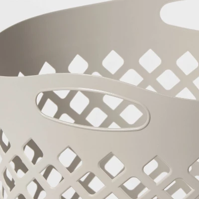 Brush aside laundry day blues with the help of this Flexible Laundry Hamper from Brightroom™. Featuring a deep cylindrical silhouette with an open top design, this laundry basket makes sorting through laundry a breeze. It’s designed with two side cutout handles for easy lifting and carrying to the laundry room. Showcasing a diamond mesh design for ventilation, this laundry basket features a solid gray hue to coordinate with a variety of decor styles.